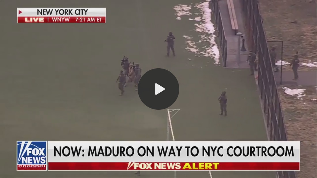 Nicolas Maduro, the dethroned Venezuelan dictator indicted on major drug trafficking and weapons charges, was transferred to federal court in New York Monday for his noon ET arraignment, with footage showing federal authorities moving a handcuffed Maduro from a helicopter to an armored truck, days after American forces captured him in his presidential palace.