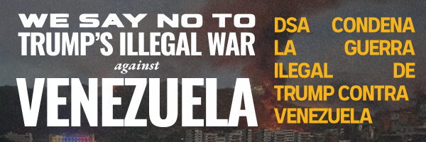The Trump Administration has started an illegal war against Venezuela. This is a nakedly imperialist war to install a US puppet government that will give Venezuela’s oil resources over to US corporations and to force US hegemony over Latin America—the new “Trump Corollary” to the Monroe Doctrine. This war is illegal both under international law and the laws governing the declaration of war within the United States.