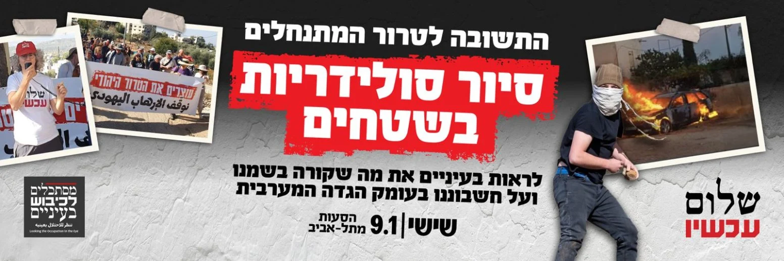 Responding to Settler Violence, Peace Now to Lead Solidarity Tour of the West Bank Peace Now will be leading a solidarity tour of the West Bank this Friday, January 9. Hagit Ofran from Peace Now’s Settlement Watch Team will be leading the tour, alongside organizers from Looking the Occupation in the Eye. We encourage anyone in the region to attend. |