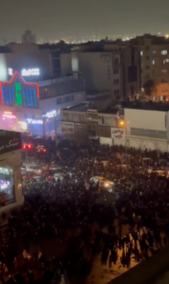 And the people of Iran have heeded the call. Reza Pahlavi is the eldest son of the last Shah of Iran: Great nation of Iran, the eyes of the world are fixed upon you. Take to the streets and, in united ranks, shout out your demands. I warn the Islamic Republic, its leader, and the Revolutionary Guards that the world and the President of the United States are closely watching you. The suppression of the people will not go unanswered ( Pahlavi). Rep. María Elvira Salazar (R-FL): The people of Iran are showing historic bravery, taking to the streets like never before demanding FREEDOM. Iran has been hijacked by extremists for too long. Sending my courage to those using their voices to demand liberty and hoping this will be the year for democracy in Iran (w/Video: Salazar). Dr. Eli David: Massive protests in and around Isfahan (3rd largest city in Iran). Regime forces are fleeing (w/video: David). Mario Nawfal: Iran is going full throttle tonight. Protests exploded across more than 100 cities, the most intense yet, and now heavy gunfire echoes through Tehran streets packed with massive crowds. People risking it all against the regime, storming governor HQs, torching police rides, building barricades. The IRGC, Islamic Revolutionary Guard Corps, the elite hardcore loyalists who crush dissent and guard the clerics, reportedly unloading on protesters. Polymarket odds spiked to 55% Khamenei falls this year. Forces stretched thin, some even clapping for crowds elsewhere. Feels like the regime’s grip slipping fast. Whole world is watching this one ( Nawfal). More video: ( Ghamari).