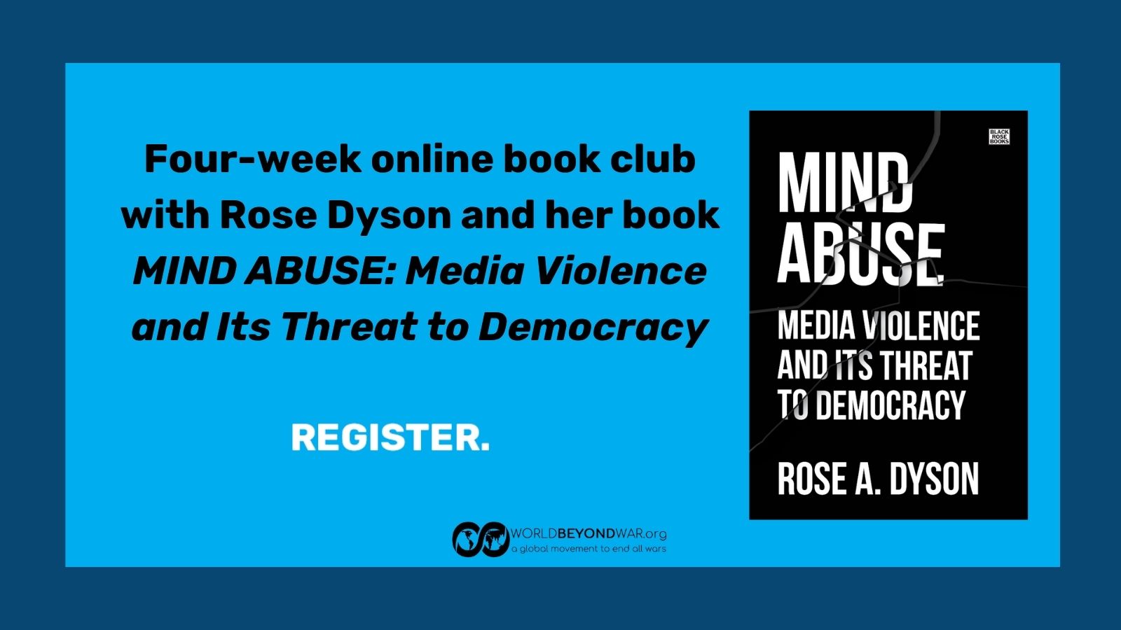 In February, 2026, World BEYOND War will be holding a weekly discussion each of four weeks of the book Mind Abuse: Media Violence and Its Threat to Democracy with the author Rose A. Dyson.