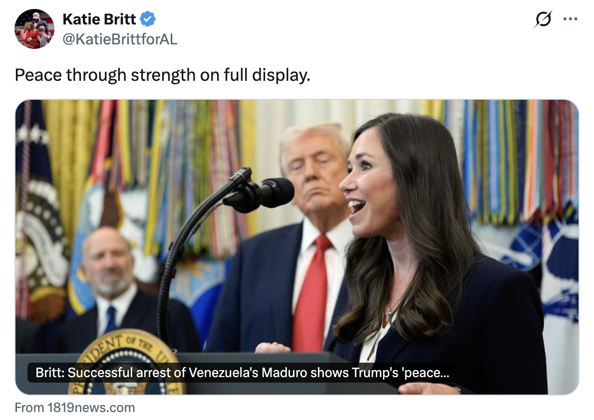 Speaking on “Sunday Morning Futures” on Fox News, Britt (R-Montgomery) called the operation a decisive demonstration of American strength and resolve.