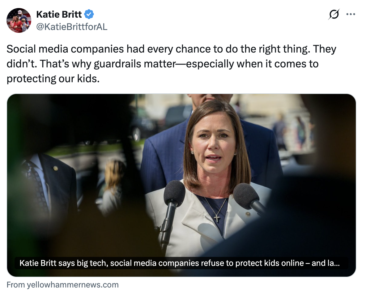 Since then, border crossings have reached historic lows, resulting in countless lives saved. Whether it’s stopping deadly fentanyl or violent criminals from crossing our border, the success in securing our nation is undeniable. | | | | I didn’t run for Senate to sit on the sidelines. I’m a mom, a conservative, and proud to stand for every corner of Alabama—our cities, small towns, and rural communities alike. I’m rooted in faith, built on family, and committed to making Alabama stronger and better for generations to come. Alabama is a place of hard work, strong values, and unyielding independence. But the Left is trying to tear that all down. I didn’t come to Washington to play games. I came to fight for every Alabamian who feels forgotten and left behind. Whether it’s securing our borders, protecting our children, or defending our way of life, I’m here fighting for Alabama’s future. This fight isn’t easy, but it's worth it. And I’m not going anywhere. Will you stand with me? | | | | | Celebrate conservative leadership and show your patriotism with this unique, high quality, Made-in-America hat. | | | | Follow Katie On Social Media: | SIGN UP FOR SMS ALERTS: TEXT "KATIE" TO 27488 | By texting KATIE, you consent to join a recurring SMS/MMS text messaging program that will provide alerts, donation requests, updates, and other important information. By participating, you agree to the terms & privacy policy for auto dialed messages from Britt for Alabama to the phone number you provide. Msg&data rates may apply. Reply HELP for help or STOP to opt-out at any time. SMS information is not rented, sold, or shared. View Privacy Policy and Terms & Conditions | | | Paid for by Britt for Alabama, Inc. | Britt for Alabama, Inc., PO Box 3759, Montgomery, AL 36109 | | | |