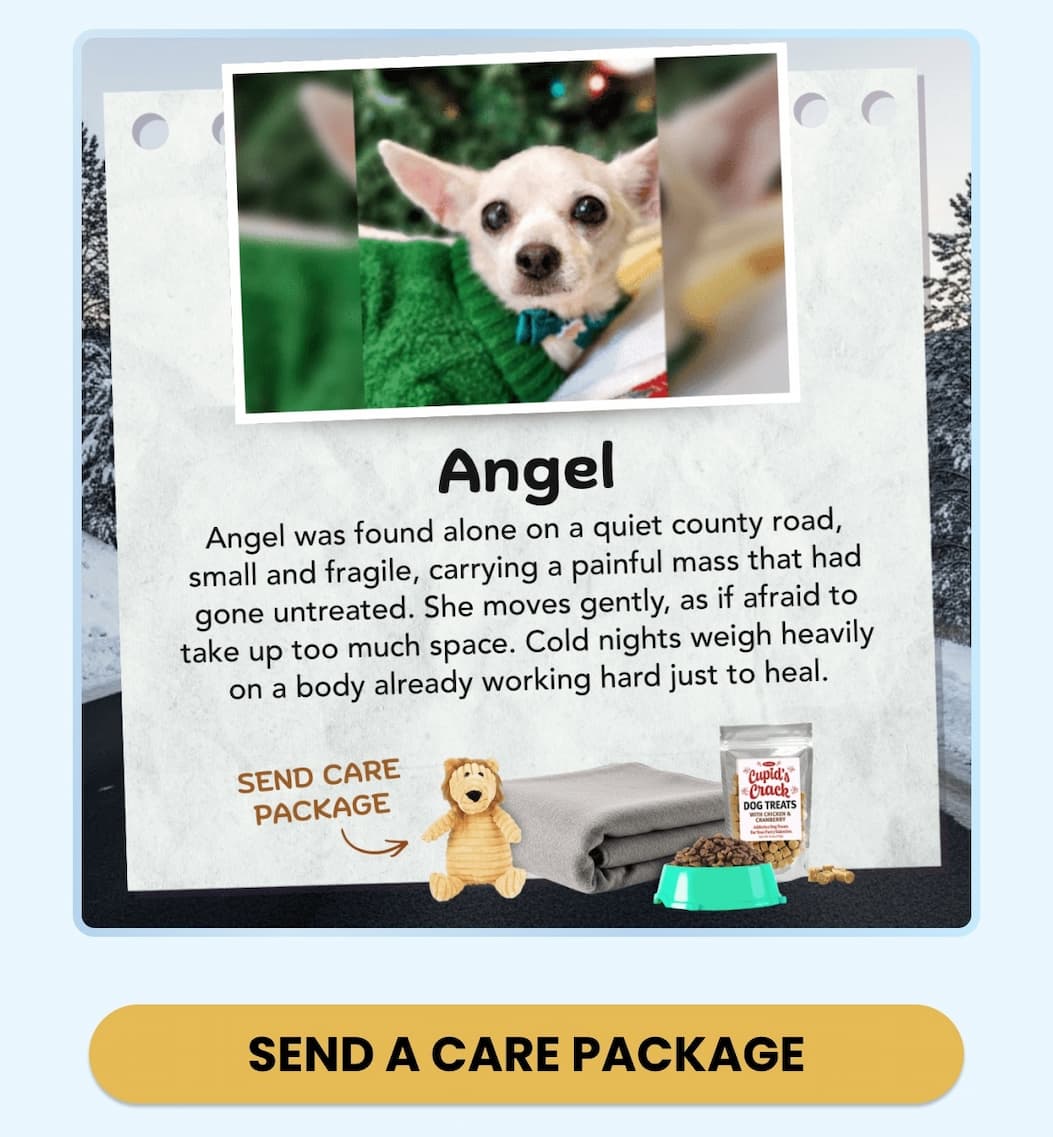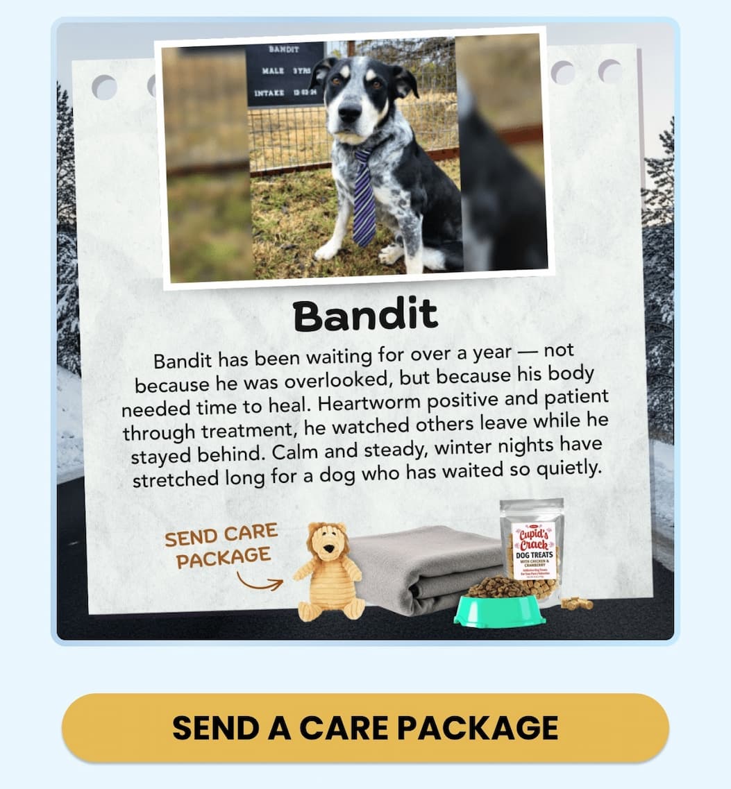 2.) Send a Care Package: Welcome them home with a blanket, a toy, 20 life-saving meals, and treats.