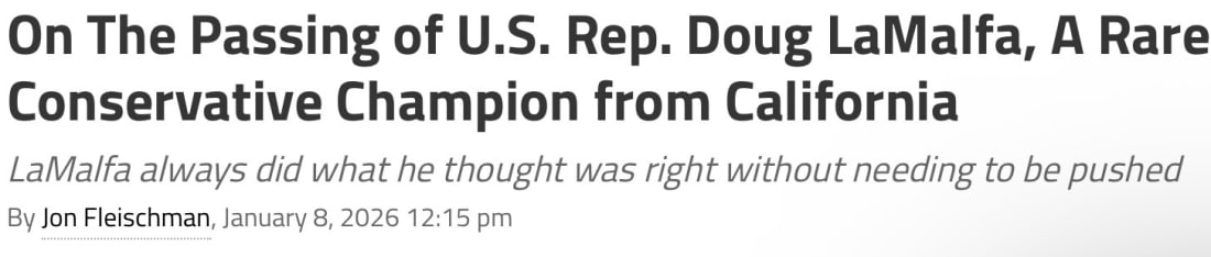 Thank you for being a free subscriber to So, Does It Matter? Please support what we do. And also get 100% of our content (right now you get about 60% of it!). Jon’s Weekend Political Reading Recommendations! Articles, Charts, Videos & More…I am perusing the web all week, and I write about some of the things I find. But I there is so much great stuff that I do not write about, but I collect for this Saturday column. Enjoy.This Saturday feature, which is a labor of love for me, is packed with amazing content. It’s very popular. It is a thank you to our hundreds of paid subscribers. There are a couple items above the paywall and a bunch below. THANK YOU for being a part of this project putting a spotlight on California politics! Reading/Watching Recommendations!TWO COMPLIMENTARY LINKS FOR ALL READERS:THIS WEEK WE LOST CONGRESSMAN DOUG LAMALFA Doug was a good friend for many years. I have written about his passing on this site, but here’s a column that I wrote that ran on the California Globe… CONGRESSMAN DOUG LAMALFA’S LAST SPEECH IN THE HOUSE In his last remarks in Congress, the late Representative was supporting his rural district. Which is what he always did… This “What is Jon Reading” Saturday column is a thank you to our paid subscribers. There’s a lot more to read below this link. Upgrade and read it now and every Saturday…... Keep reading with a 7-day free trialSubscribe to FlashReport Presents: So, Does It Matter? On CA Politics! to keep reading this post and get 7 days of free access to the full post archives. A subscription gets you:
