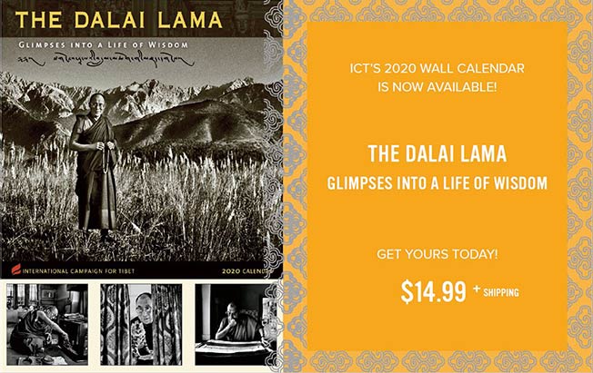 The latest edition of ICT’s annual wall calendar, The Dalai Lama: Glimpses into a Life of Wisdom, features 12 photographs of His Holiness the Dalai Lama by the renowned Indian photographer Raghu Rai, who has closely followed His Holiness' life. Today His Holiness, who has retired from his Tibetan political leadership, devotes himself to promoting human values and religious harmony everywhere while continuing to draw attention to the rich Tibetan Buddhist cultural heritage, which he feels has much to contribute to the development of world civilization. This calendar is a tribute to the Dalai Lama by the International Campaign for Tibet.