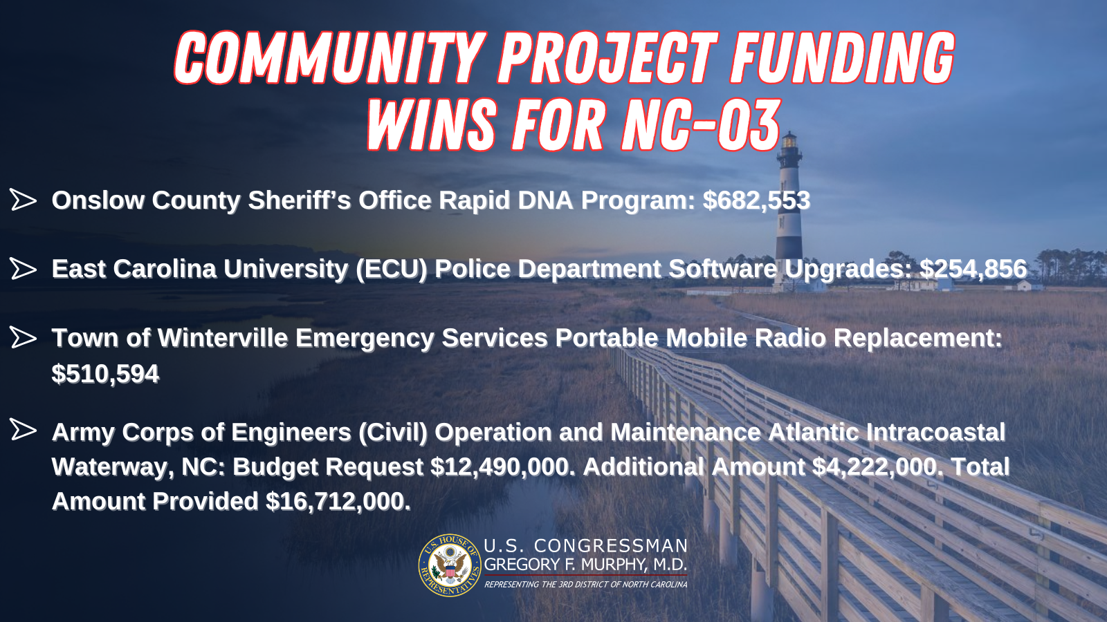 Passage of Community Project Funding for NC-03 in Appropriations Package