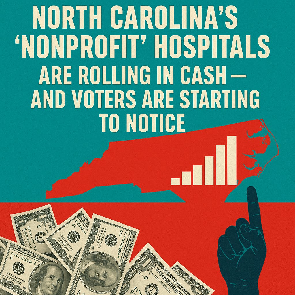 The Nonprofit Mirage: North Carolina Hospitals and the Middle-Class SqueezeBillions in revenue, zero in taxes—inside the quiet imbalance between hospital power and public burden.The term “nonprofit hospital” evokes a specific image in North Carolina — one of charity, and community stewardship. The reality, however, is that these institutions have grown into something more like monopolistic holding companies than local caregivers. And for the state’s middle class, the consequences are increasingly inescapable. Four hospital systems: Atrium Health, Duke Health, UNC Health, and Novant Health dominate the state’s healthcare ecosystem. Each claims nonprofit status. Each operates under a vast tax shield. And each pulls in billions in revenue annually while behaving less like high-performing, tax-advantaged corporations. The contradiction is no longer just a technicality. It’s a structural injustice, and voters are beginning to notice. The Numbers Behind the Tax HaloAtrium Health, the largest among the four, brought in over $12 billion in revenue last year. Its CEO, Eugene Woods, was paid more than $14 million. Atrium simultaneously enjoyed massive tax exemptions (property, income, and sales) while reportedly suing patients over unpaid medical bills. Duke Health, tied to one of the wealthiest private universities in the country, earned $6.8 billion in 2024. Its facilities benefit from Duke University’s endowment infrastructure and tax-exempt status. Novant Health reported $10.17 billion in revenue that same year and declared over $1.6 billion in “community benefit,” which can include unpaid Medicare reimbursements rather than direct charity. Even UNC Health, the state-run system often described as the most civic-minded of the group, benefits from opacity around what exactly qualifies as “charitable” care. Like the others, it sits on valuable, tax-exempt real estate and receives billions in federal and state funds. These organizations do not pay the taxes other businesses do. Yet they compete in the same marketplace, sell services at market rates, and shield their executive compensation behind complex nonprofit governance structures. This is a golden arrangement. The Middle-Class Price TagFor North Carolina’s working and middle-class families, the cost of this arrangement is both direct and diffuse. The most obvious impact is the inflated cost of care. Despite their tax benefits, nonprofit hospitals routinely charge commercial insurance plans, and their patients, the same, if not higher, prices than for-profit competitors. This drives up premiums and out-of-pocket costs, especially for families whose income disqualifies them from subsidies but cannot absorb $1,500 ER bills without financial strain. The indirect burden is equally damaging. Every dollar these hospitals avoid in taxes is a dollar unavailable to counties and municipalities who maintain roads, fund schools, and staff police departments. When a hospital system sits tax-free on hundreds of millions in prime downtown property, the rest of the tax base picks up the slack. In theory, the trade-off is justified: nonprofit hospitals are expected to provide charity care — free or reduced-cost services for those who can’t pay. In practice, many spend far less on such care than they receive in tax breaks. The result is a net outflow of public wealth into privately governed institutions with little oversight. The Charade of CharityThe issue is not that these hospital systems make money. Healthcare is expensive, and stability requires reserves. The issue is what they do with their profits, and what they claim in return. According to a recent City Journal analysis, these systems fund real estate expansion, executive bonuses, and administrative growth at scales that dwarf most public institutions. They also invest heavily in public relations, lobbying, and legislative obstruction. Atrium, for instance, has lobbied aggressively against price transparency laws that would force it to disclose what it charges insurers, patients, and government programs. None of this is illegal. But all of it undermines the core assumption that nonprofit hospitals exist primarily to serve the public. As access shrinks and costs rise, the spectacle of billion‑dollar “nonprofits” paying hedge‑fund salaries reads not as reform failure, but institutional contempt. Accountability on the TableThe political winds are shifting. Lawmakers in Washington and Raleigh have begun floating reforms that would pressure nonprofit hospitals to justify their status. Among the proposals:
