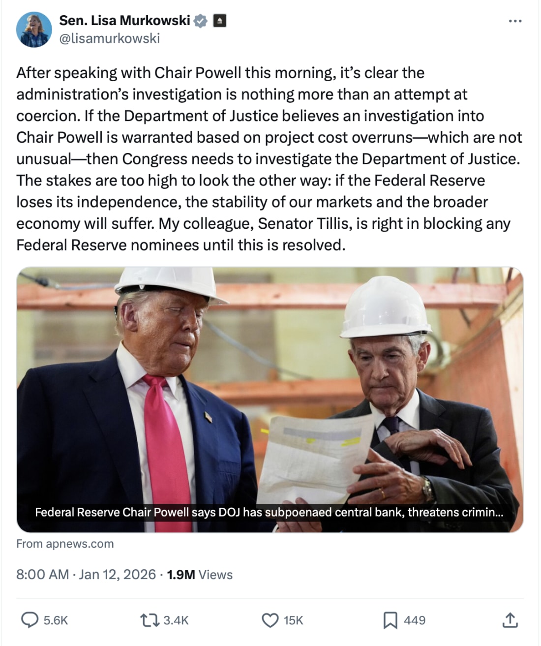The Dam Is Breaking: Republicans Warn Trump He’s Gone Too FarTracking when Republicans begin publicly breaking with Trump, and what it signals.Donald Trump just opened a criminal investigation into Jerome Powell, the Federal Reserve chair he appointed, because Powell wouldn’t slash interest rates on demand. That alone is a major red flag, but this kind of self-serving retribution isn’t new. What’s new is this: Republicans are sounding the alarm. And they’re doing it on the record. What Republicans SaidRepublicans never like to leave a paper trail, which is what makes this moment so unusual. Republican Senator Thom Tillis posted on X: He went further, vowing to block confirmation of any Fed nominees until the matter is resolved. Republican Senator Lisa Murkowski echoed his concern after speaking directly with Powell, also posting on X: And it didn’t stop there. • House Financial Services Chair French Hill warned the probe “could undermine this and future administrations’ ability to make sound monetary policy decisions.” This isn’t defiance. It’s all talk, no walk. Concern without consequences. And that’s why nothing actually changes. What Trump is Really DoingThe motive isn’t subtle. Trump has spent months publicly attacking Powell for refusing to slash interest rates the way Trump wants. When Powell didn’t comply, Trump did what he always does: he sought retribution. In other words, this isn’t about building renovations. Powell himself all but said as much in a Sunday video, noting that the investigation followed sustained political pressure to bend monetary policy to Trump’s will. This isn’t about optics. Why This MattersPresidents are not supposed to control the Federal Reserve. The independence of the Fed is foundational to economic stability. Once that independence collapses, markets stop trusting that decisions are being made based on data rather than political needs. This isn’t culture war noise. What it Actually SignalsFor nearly a decade, Republicans have rationalized Trump’s abuses as jokes, trolling, or strategy. But threatening the Fed, and weaponizing the DOJ to do it, hits something even they can’t fully hand-wave away. This is how real breaks start. Once someone goes on the record, it creates permission for others to follow. The cracks begin to show long before the collapse. What to Watch for NextIs this a one-off outburst of self preservation from a handful of Republicans trying on a spine for size? Or will this empower more Republicans to decide that saying nothing is riskier than speaking up? The Republicans enabling this behavior aren’t spectators, they’re participants in the same economy as the rest of us. If Trump wrecks the economy to juice it ahead of an election and sends it crashing afterward, everyone gets hurt. There is no first-class cabin when the plane is sabotaged midair. And one last thingTrump is attempting to retroactively criminalize Jerome Powell over… building renovations. Donald Trump. If Trump was any less self-aware, he wouldn’t be able to see his own reflection in a mirror. Trump ran as a populist. He promised lower costs. They rose. He hasn’t got the time to follow through on his promises to his supporters, but plenty of it to punish anyone who dares tell him, “no.” This probe will likely fail. But it reveals something important: how small, petty, and self-interested this abuse of power really is, and how little Trump cares about the consequences for everyone else. You're currently a free subscriber to Brian Tyler Cohen. For the full experience, upgrade your subscription. |
