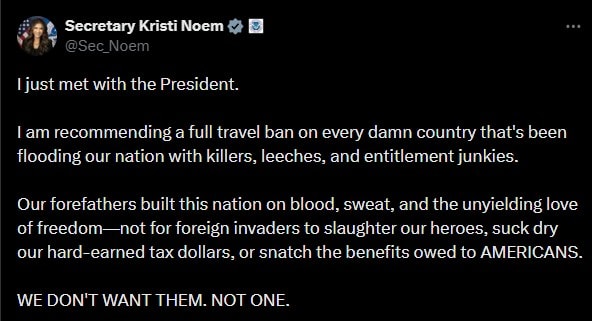 Politics and Culture in Plain Talk. Minutes after Renée Nicole Macklin Good, a 37-year-old US citizen, was fatally shot by a United States Immigration and Customs Enforcement (ICE) agent on January 7th, Kristi Noem took to a Texas stage backed by cops, a colonel, and a flag-draped tactical vehicle. Still in costume from the set of Save a Hoss, Ride a Cowgirl, a campy Western of unknown rating, Noem sought to reassure an anxious nation that no one who mattered had died in the incident. Renée Good was a no-good domestic terrorist who had attempted to run down a mild-mannered American hero whose vehicle was stuck in the snow because of the adverse weather that was in Minneapolis. The noble agent had, with great reluctance, fired in self-defense. Then the pompous parrots began to squawk: “Domestic terrorist, domestic terrorist, domestic terrorist!” JD Vance scolded the media for getting it so wrong. Just look at this video from the ICE agent’s cell phone, he told us. Only he didn’t really want us to examine it. We were supposed to adopt without question Vance’s insinuation that the video exonerated the agent. Sorry, JD, but your smarmy condescension is a tell: JD’s bluffing. JD’s lying. ICE agent Jonathan Ross wasn’t fearing for his life when he switched his cell phone to his left hand and drew his weapon with his right. He was angry. Renée Good’s wife had just said to him, “You wanna come at us? You wanna come at us? I say go get yourself some lunch, big boy.” She had laughed at him, poked his bruised and tender ego. F***ing b****! The cell phone video clearly shows Renée Good cranking the steering wheel to the right—away from Ross—her attention on the ICE agent standing outside her window. If she was a domestic terrorist, she was as inept at it as Ross is at law enforcement. A good terrorist turns the wheels toward the target, not away, and tromps the gas. Renée Good didn’t accelerate sufficiently to endanger anyone until after she was shot. She initially pulled away like a fast-food customer leaving a drive-through window while trying to snag some fries from the bag. Ross’s phone wobbles and the camera points at the sky when he starts shooting. His left hand drops—but does not drop his phone—as he concentrates on keeping his sights aligned on Renée Good’s head and squeezing the trigger. This may be the part of the video Vance wants us to believe shows Agent Ross acting in self-defense. It does not. We can’t discern the gunshots very well, but we do hear Ross say, “F***ing b****!” Those two words say much more about Ross than about Renée Good. Every female teacher has had those words said of her after giving a guy like Jonathan Ross exactly the grade he deserved. That two-word epithet has probably been applied to every American woman who has ever shown a bit on ambition or refused an offer to buy her a drink. In this case, it means what the Trump administration is saying: that Good deserved to die. For Ross, it’s an expression of contempt and self-satisfaction; it says, “I got mine.” Things are exactly as he thinks they are supposed to be. She laughed at me. Jonathan Ross is certainly responsible for firing his weapon. That is what killed Renée Good, but neither she nor Ross set the scene. Responsibility for that goes all the way to the top and back in time even further than the 2024 election. First there was a campaign that labeled immigrants as the despised other. Haitian immigrants were eating pets in Ohio. Undocumented immigrants were taking up all the housing and committing all the crime. Look at this girl who was attacked by an immigrant. Say her name. Our anecdote means more than all of the data. The data is fake news. The truth is what we say it is. Then came the clear intention to crack down on the places that did not vote for Donald Trump. It was clear from the beginning that it wasn’t about rounding up violent criminals. It was and remains about showing that Trump’s troops can do whatever they want. You will comply, and even when you do, you will be treated as something not worthy of dignity or respect. Every interaction is a confrontation, and escalation is the norm. They shout from behind their masks and you obey. Don’t make us hurt you more than we already intend to. First, it was California and “war-ravaged” Portland. Then Minnesota, with its Democratic Governor and U.S. Representative Ilhan Omar. She’s “garbage,” Trump said.