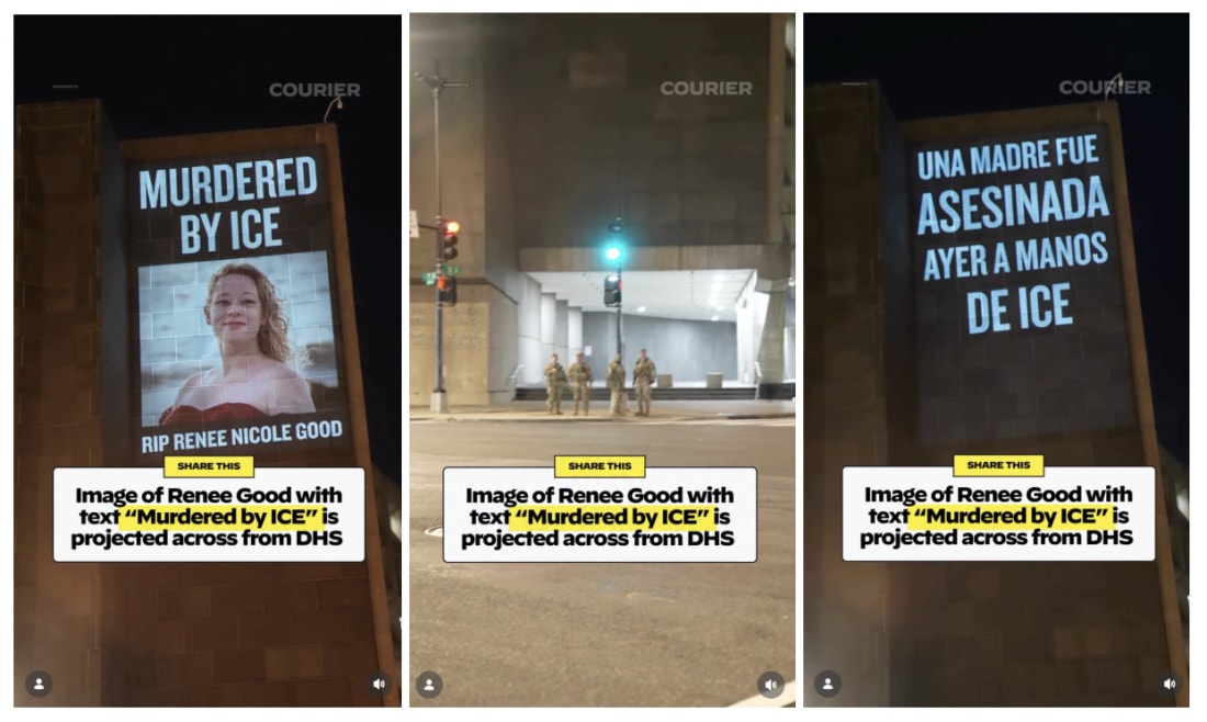 COURIER covers ICE's violence and the killing of Renee GoodProtests erupt in Minnesota, far-right propaganda backs ICE, and moreHi all — Thank you for being a part of this amazing 50,000+ community! Host of COURIER’s Panic World, Ryan Broderick, was on the ground in Minneapolis, Minnesota to cover the protests taking place in the aftermath of ICE’s murder of 37-year-old mother of three, Renee Good. This is a must-watch episode that documents Broderick’s on-the ground experience with protestors, law enforcement, ICE agents, right-wing YouTubers, and of course... some extreme cold. - Charlotte Robertson P.S. If you haven't already, give us a follow on social (like and subscribe to our YouTube, Instagram, TikTok, Bluesky, Threads, and X/Twitter) to make sure you don't miss anything. How to build a radically truthful news outletIn the age of Trump, journalists are failing to push back against disinformation. Mark Jacob highlights 10 ways news outlets can counteract the twisted reality being pushed by others in this week’s Stop the Presses. ICE agents shoot two, kill one, in regions targeted by far-right propaganda networkCOURIER correspondent Camaron Stevenson takes a look at the uptick in aggression resulting from an extensive propaganda campaign coordinated by the White House in this week’s edition of Below the Beltway. Keith Edwards: What I learned building a progressive YouTube channel in 2025Progressive content creator Keith Edwards grew his YouTube channel from 0 to 1M+ in just 15 months. Keith shares his top tips and tricks for growth on YouTube — and takes a look at what’s to come next in 2026 — for FWIW. Support independent mediaIf you support news without all the bullsh*t, consider making a contribution to COURIER. Together, we can build a more informed, engaged, and representative America. COURIER is partnering with journalist and content creator Kat Tenbarge to bring news updates to you throughout the week. If you haven’t already, subscribe to COURIER’s YouTube now, and take a look at one of Kat’s first videos that breaks down Trump’s fear of impeachment. On COURIER's TikTok, you can see the top post of the week here with 26+ million views and 3.9+ million likes. On COURIER's Instagram, you can see the top post of the week here with 4.5+ million views and 307,000+ likes. Image of Renee Good with text “Murdered by ICE” appears across from Trump’s DHSProjections of Renee Good appeared across the street from Trump’s Homeland Security in Washington, D.C. after she was killed by an ICE agent in Minneapolis, Minnesota last week. COURIER has the video. Celebrities wear pins protesting ICE at the Golden Globe AwardsCelebrities protested Trump’s ICE at the Golden Globes, wearing pins that read “ICE Out” and “Be Good.” The latter is a reference to Renee Good, the Minneapolis woman killed by ICE agents. COURIER has the story. Rep. Eric Swalwell shames colleagues defending murder of Minnesota momRep. Eric Swalwell (D-CA) delivered a must-watch speech calling out his colleagues for defending ICE amid the murder of Renee Good, a 37-year-old mother of three. COURIER has the video. Support independent mediaIf you support news without all the bullsh*t, consider making a contribution to COURIER. Together, we can build a more informed, engaged, and representative America. ICE wants to warehouse people in Michigan, according to new reportIndustrial warehouses weren’t built for people, but new reporting shows ICE plans to detain immigrants inside them. COURIER’s Michigan outpost, The ‘Gander, has the story. Winnable Harrisburg House seat opens up for Pennsylvania DemocratsPennsylvania House Democrats have the opportunity to expand their majority as a Republican lawmaker steps away in November, reports COURIER’s Pennsylvania outlet, The Keystone. Sean Duffy claims credit for infrastructure bucks that actually came from BidenTrump’s Transportation Secretary Sean Duffy changed the name on federal grants, but they still came from President Biden’s Bipartisan Infrastructure Law. COURIER’s Wisconsin outlet, UpNorthNews, has the story. |