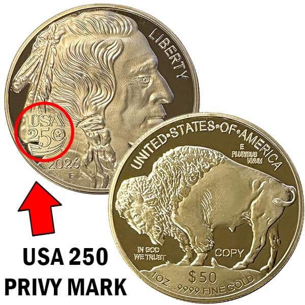 24kt Gold American Buffalo 2026 Coin w/ USA 250 Privy Mark