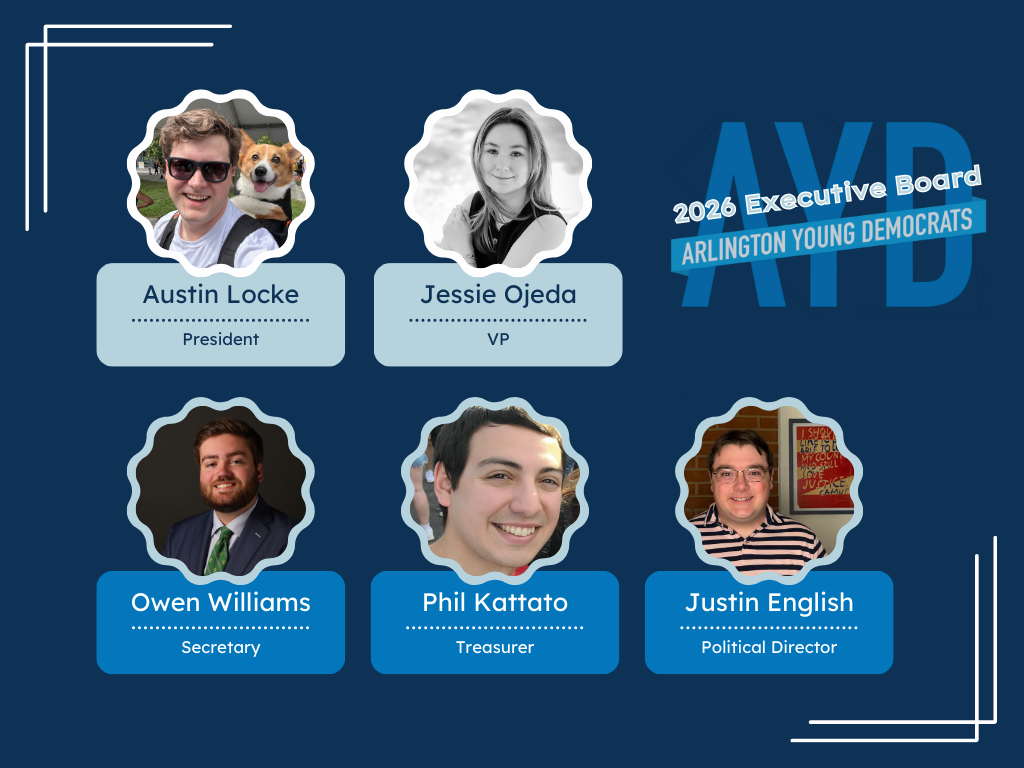 A new year is upon us and so is a new Executive Board and a full slate of AYD events! Whether you’re interested in meeting fellow Young Democrats, lobbying the new Democratic trifecta in Richmond to pass our legislative priorities, or ensuring South Arlington stays blue, there’s something for everyone this month!
