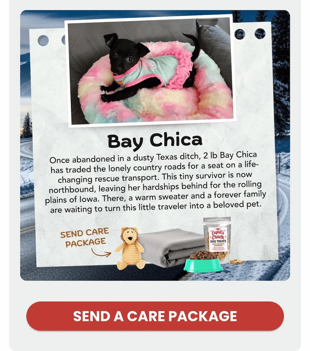 Our friends over at BARK Rescue are on the road pulling out at 3 AM tomorrow morning (Friday). We’ll be driving straight through the day, navigating winter weather and icy roads to reach Iowa by late afternoon tomorrow.