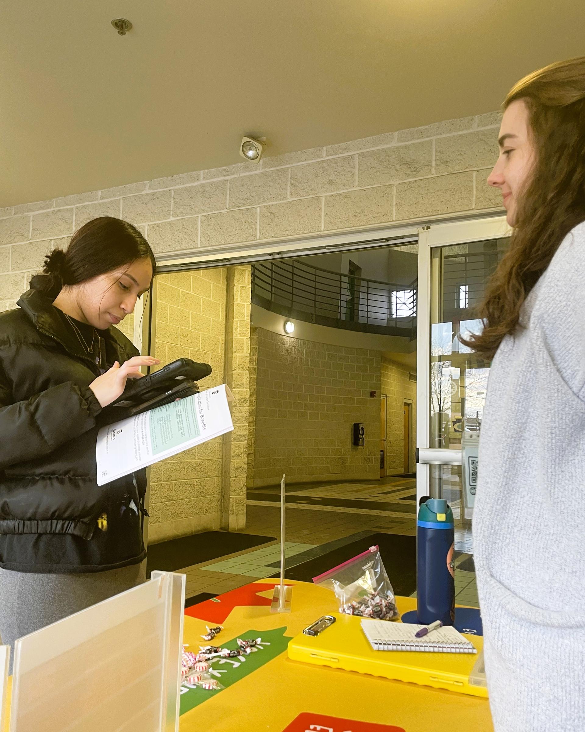 | One of our canvassers connects with a newly registered voter at Jubilee Soup Kitchen, Pittsburgh. |