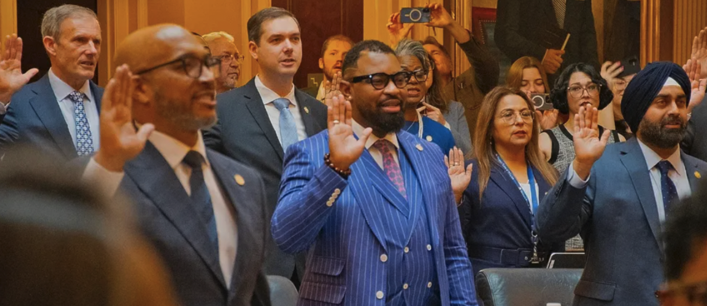 Sister District Alumni Rep. Joshua Cole, Rep. Josh Thomas, Rep. Elizabeth Guzman, Rep. JJ Singh taking the oath of office