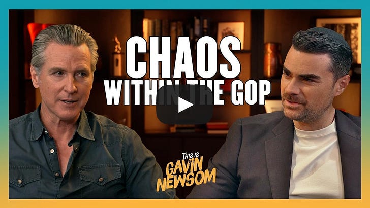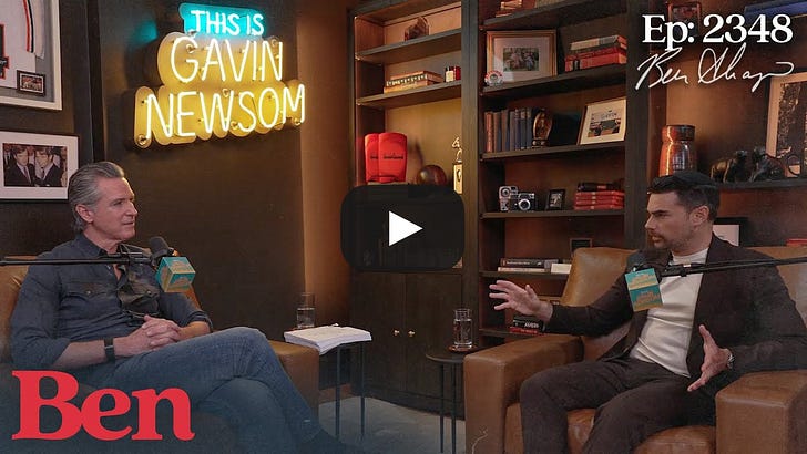 This content is available for free to all subscribers. But you really should consider a paid subscription. This unlocks our afternoon e-mails, our Saturday “What is Jon Reading” e-mail, and analysis on breaking news. Normally a subscription is a modest $7 a month or just $70 for the year. Gavin Newsom's Podcast With Guest Ben Shapiro... Pass the Popcorn!Newsom is still doing his podcast, with various guests, showcasing his "superpower" of talking and not saying anything. It's pretty impressive, actually, when you think about it.Ben Shapiro has been a personal friend for a very long time (another conservative Jewish kid who, like me, was an early friend of Andrew Breitbart), and he was just a guest on the odd Gavin Newsom podcast. Below are three YouTube videos for you. The first is just a short clip of Ben and Gavin, the next is a segment of the Ben Shapiro show, the first half of which is Ben’s take on the interview, with outtakes. You should watch this for sure. And for those with about two hours, you have the entire Newsom Podcast. (And I owe y’all a Winners & Losers in California Politics column for this week — they’ve all been picked, but my day job is likely to push it into the weekend or Monday — but fear not, it’s coming.) If you want a preview, here’s just one Ben outtake… And here is the podcast… These are the time tags provided by Newsom (you can see his people’s phrasing on many timestamps). 00:36 Ben Shapiro Is California Raised 5:25 Law vs. Politics 7:00 How Bullying Shaped Ben 11:26 Breitbart, Bannon & The Birth of a Right-Wing Media Empire 19:02 Are Podcasts’ Influence Overrated? 22:06 ICE in California, The Importance of Immigrants & The Benefits of Sanctuary Policies 30:01 Solving The Housing Crisis & Fighting Crony Capitalism 38:47 California vs. Red States 42:51 Did Ben Actually Support Prop 50 47:33 Is Donald Trump Trying To Kill Free Elections? 54:32 TPUSA’s America Fest Speech, Candace Owens & The Right Wing Influencer Scene 1:00:50 Shapiro’s Relationships With Charlie Kirk & Tucker Carlson 1:03:04 Grievance Based Politics & False Nostalgia 1:08:50 Trump’s Economic Troubles, The Affordability Crisis and The Tariff Failure 1:17:06 Shapiro’s Justification of Trump’s Foreign Policy & The Greenland Question 1:19:49 Trump’s Interference With The Fed 1:21:05 Israel, Hamas, The Devastation In Gaza, & Criticisms of Bibi Netanyahu 1:30:30 Gender Affirming Care Under Trump & The Right’s Weaponization of LGBTQIA Rights 1:41:08 Is Trump The Scavenger in Ben’s Book? 1:45:28 Rapid Fire: Midterm Predictions, Healthcare Subsidies, Vance vs, Rubio, Bondi’s Exit You’re currently a free subscriber to So, Does It Matter? California Politics! For the full experience, upgrade your subscription. See how much more you get with an inexpensive, paid subscription, but clicking the button below! Support me in providing hard-hitting, clear-eyed analysis of California politics. I am beholding to no one, and sugar-coat nothing! |