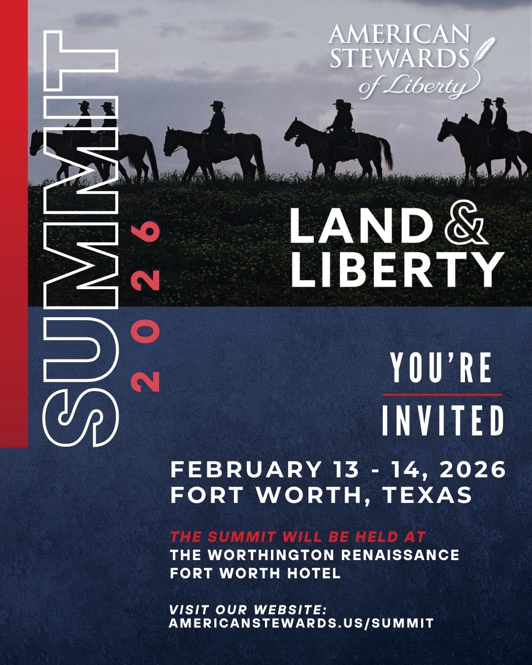 Thanks to our friends over at American Stewards of Liberty, all True Texans have the opportunity to use the promo code TTP15 to get 15% off tickets to the 2026 Land & Liberty Summit on February 13-14 in Fort Worth!