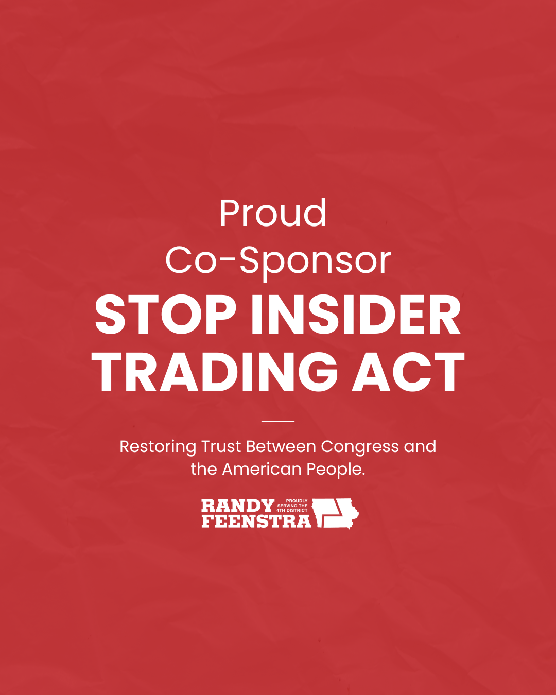 I am glad to help lead the Stop Insider Trading Act, which bans elected officials from buying stocks and profiting off insider information while working to restore trust between Congress and the American people.