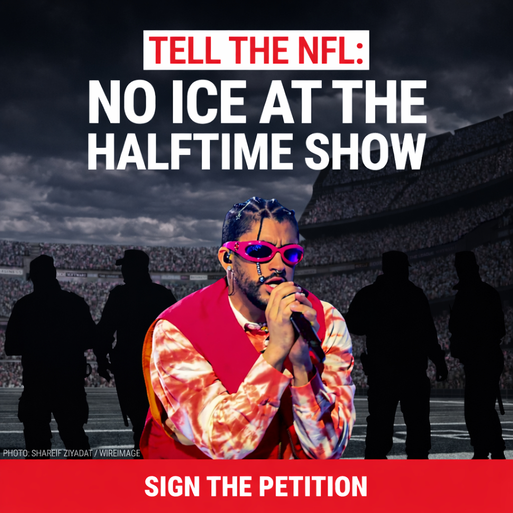 Trump’s ICE is planning to raid the Super Bowl. You read that right. ICE agents will be “all over” Levi’s Stadium during the biggest sporting event in the U.S.—because a Puerto Rican artist, Bad Bunny, is performing. Trump and his cronies are using the Super Bowl as a stage for fear and political theater. ICE has no business at a football game. This is intimidation, plain and simple. Tell the NFL: Use your power to protect fans and communities. Say NO to ICE at the Super Bowl. |