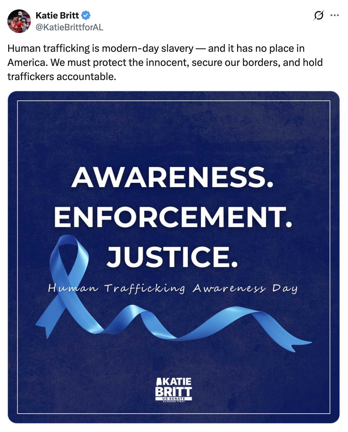 Sen. Katie Britt, R-Ala., the chair of the Homeland Security Appropriations Subcommittee, is negotiating with Democrats to find a pathway forward on the bill before funding runs dry Jan. 30. | | | | I didn’t run for Senate to sit on the sidelines. I’m a mom, a conservative, and proud to stand for every corner of Alabama—our cities, small towns, and rural communities alike. I’m rooted in faith, built on family, and committed to making Alabama stronger and better for generations to come. Alabama is a place of hard work, strong values, and unyielding independence. But the Left is trying to tear that all down. I didn’t come to Washington to play games. I came to fight for every Alabamian who feels forgotten and left behind. Whether it’s securing our borders, protecting our children, or defending our way of life, I’m here fighting for Alabama’s future. This fight isn’t easy, but it's worth it. And I’m not going anywhere. Will you stand with me? | | | | | Celebrate conservative leadership and show your patriotism with this unique, high quality, Made-in-America hat. | | | | Follow Katie On Social Media: | SIGN UP FOR SMS ALERTS: TEXT "KATIE" TO 27488 | By texting KATIE, you consent to join a recurring SMS/MMS text messaging program that will provide alerts, donation requests, updates, and other important information. By participating, you agree to the terms & privacy policy for auto dialed messages from Britt for Alabama to the phone number you provide. Msg&data rates may apply. Reply HELP for help or STOP to opt-out at any time. SMS information is not rented, sold, or shared. View Privacy Policy and Terms & Conditions | | | Paid for by Britt for Alabama, Inc. | Britt for Alabama, Inc., PO Box 3759, Montgomery, AL 36109 | | | |