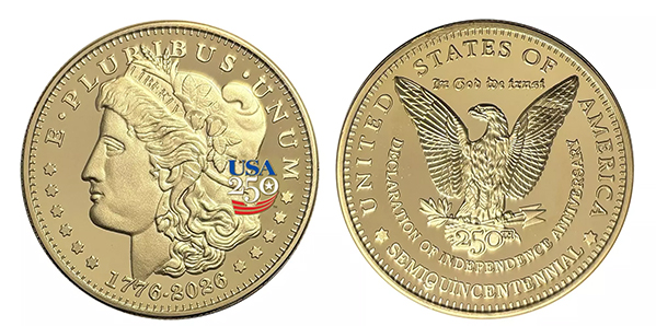 This double-dated 1776-2026 tribute, featuring a Red, White, and Blue USA 250 Privy Mark.