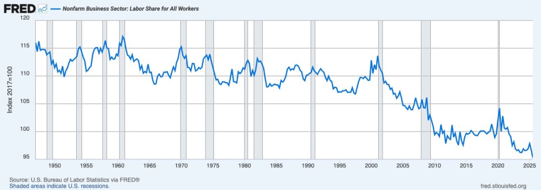 Welcome to You’re Probably Getting Screwed, a weekly newsletter and video series from J.D. Scholten and Justin Stofferahn about the Second Gilded Age and the ways economic concentration is putting politics and profits over working people. Welcome to You’re Probably Getting Screwed, a weekly newsletter and video series from J.D. Scholten and Justin Stofferahn about the Second Gilded Age and the ways economic concentration is putting politics and profits over working people. It’s been a week… YOU’RE PROBABLY (ALSO) GETTING SCREWED BY:The tech giant is building an “NSA for Capitalism” in the words of Groundwork Collaborative’s Lindsey Owens. At a national trade show Google unveiled its “Universal Commerce Protocol” with the goal, according to Owens, of evolving “from a simple pipe for payments into a platform for personalization.” It is another example of the AI dystopia that is playing out before our eyes. While tech bros are promising a utopian society that AI will create, what it is really being used for is raising costs on all of us. You can find Owen’s full thread on Twitter or BlueSky. Hollywood If you watched the Golden Globes you might have picked up on a theme from some of the jabs as well as the calls to action. Everyone knows Netflix acquiring Warner Brothers would be bad. Like big mergers in nearly any other industry, all you have to do is look at recent history. Following Disney’s merger with 20th Century several years ago the number of wide releases the company produced was significantly slashed. Throttling output is a strategy of monopolists. (h/t to Lee Hepner of the American Economic Liberties Project for the chart). Data Centers Major League Baseball Could MLB be creating a sports technology nepo cartel? That is the question reporter Bradford William Davis digs into. The Athletic (paywall) recently reported that MLB will be taking control of the in-game technology available across all minor-league parks, requiring any tech to get league approval. Davis looks at how this centralized power grab could benefit vendors with close ties to MLB Commissioner Rob Manfred at the expense of less-connected competitors. Another way MLB takes advantage of its antitrust exemption. Union-Busting It has been a long time since workers were getting as screwed as they are today. Labor’s share of income, which has been steadily declining since the 1980s, hit its lowest mark on record in the third quarter of 2025. That is nearly 80 years worth of data! Fascism If you have not yet checked out the new substack Who Shall Rule by Ron Knox, Senior Researcher at the Institute for Local Self Reliance, you need to! Last week Ron wrote about the connection between monopoly power and fascism. “If America is to descend into fascism, the state will require the acquiescence of, and often partnership with, corporate power.” You can check out the full piece, and subscribe, here. Good Ole’ Layoffs Another reason tech bros dress up AI in a utopian ideal is to try and distract from their real goal, replacing all of us with chatbots. However, a new brief from Oxford Economics suggests that at least currently, the robots are not winning yet. Instead companies are using AI as a cover for routine headcount reductions according to Fortune. As the Oxford writes, “We suspect some firms are trying to dress up layoffs as a good news story rather than bad news, such as past over-hiring.” It should be noted that only in corporate America are layoffs ever a “good news story.” SOME GOOD NEWSElizabeth Warren National Press Club Speech Massachusetts Senator Elizabeth Warren gave a speech to the National Press Club this week laying out a new vision for the Democratic Party. The address comes as a new Gallup Poll shows a record number of Americans self-identify as independents. These voters are not searching for some magical centrist policy. They want leaders to address the economic uncertainty they face. This is particularly true for millennials and Gen-Z. In order to speak to the economic anxieties of Americans and build a sustainable working class coalition, Warren is calling on Democrats to focus on taking on the rich and powerful. “There are two visions for what a big tent means. One vision says that we should shape our agenda and temper our rhetoric to flatter any fabulously rich person looking for a political party that will entrench their own economic interests. The other vision says we must acknowledge the economic failures of the current rigged system, aggressively challenge the status quo, and chart a clear path for big, structural change.” BEFORE YOU GOBefore you go, I need two things from you: 1) if you like something, please share it on social media or the next time you have coffee with a friend. 2) Ideas, if you have any ideas for future newsletter content please comment below. Thank you. Standing Tall for All, J.D. Scholten |