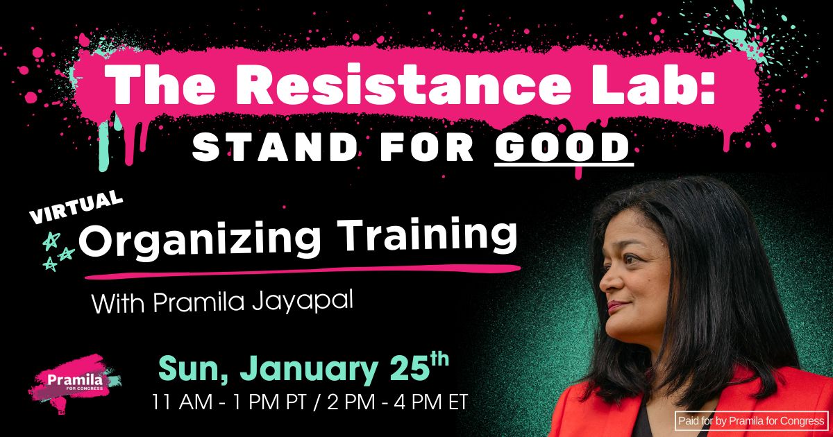 That’s why Pramila is inviting you to join a special Resistance Lab training on Sunday, January 25th at 11 a.m. PT / 2 p.m. ET — held in honor of Renee Good and the many communities and individuals brutalized by ICE’s reign of terror. If you’re interested in joining, you can RSVP using this link.