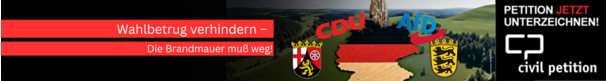 P.S.: Bitte spenden Sie 15, 50, 200 oder … Euro, damit wir einen Massenprotest gegen den Schwarz-Rot und Schwarz-Grün in den Ländern starten können. Wenn die Brandmauer nicht abgerissen wird, ist das mit einem Wahlbetrug gleichzusetzen. Bitte machen Sie mit. Vielen Dank!