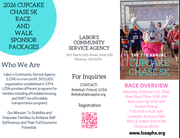 On Saturday, February 14, 2026, for the 7th Annual Cupcake Chase 5K, benefiting Laborβs Community Service Agency (LCSA)βa nonprofit founded by labor to support working families across Arizona.