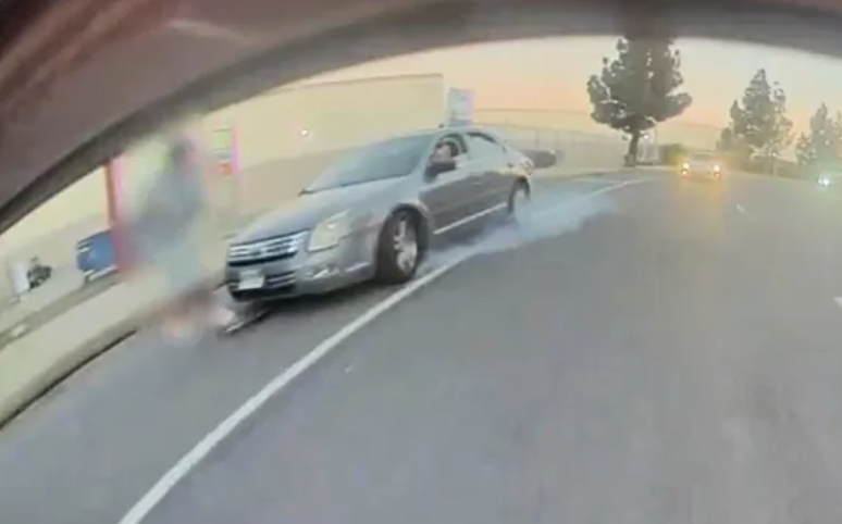 Graphic video released Monday captured the moment a hit-and-run driver struck a skateboarder in Panorama City last week, critically injuring the man, police said. The violent collision happened around 5:15 p.m. on Jan. 15 along Nordhoff Street near Lurline Avenue, according to the Los Angeles Police Department. Investigators said the skateboarder, described as a man in his 30s, was traveling westbound when he was hit by a four-door gray Ford Fusion. The impact threw him from the skateboard and into the roadway near the curb. Video of the crash shows the sedan veering into the skateboarder, sending him violently onto the pavement before the vehicle speeds away. A screenshot from the footage shows the gray car mid-turn as the skateboarder is thrown from his board. Instead of stopping, the driver continued westbound, made a U-turn and fled eastbound on Nordhoff Street without identifying themselves or rendering aid, police said. Los Angeles Fire Department paramedics rushed the victim to a local hospital, where he was listed in critical condition.