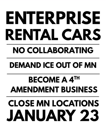 All eyes on Minnesota. Today in solidarity I’m demanding Enterprise choose us: truth, freedom, the constitution and our communities. Stand with me in demanding Enterprise stop renting to ICE. #ICEOUT