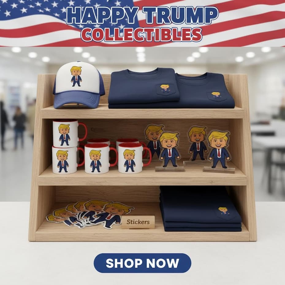 We've put together a collection of new "Happy Trump" collectibles inspired by this now-viral pin!