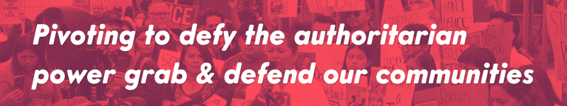 While we entered 2025 knowing the Trump regime would inflict pain on our communities, the violent invasions of our cities, tearing apart of our civic institutions, and authoritarian power grabs have been far worse than we anticipated. Together with our partners, our network jumped in to counter these assaults: going door-to-door educating tens of thousands of small business employees and owners on their constitutional rights if ICE shows up, supporting lawsuits against racial profiling and warrantless raids, organizing mass mobilizations that put a spotlight on illegal gerrymandering efforts.