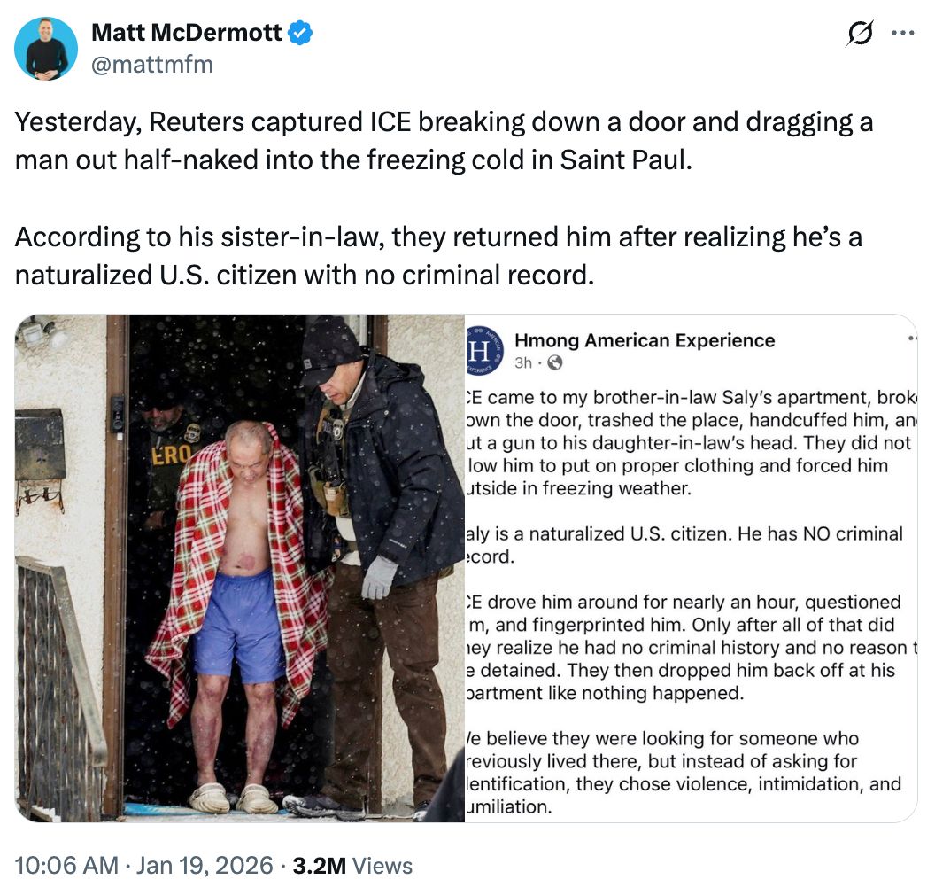 ChongLy Thao is a US citizen and a St. Paul resident. His story captures the entire essence of ICE’s brutal and callous operations in our state. Here’s the full account from a family member: