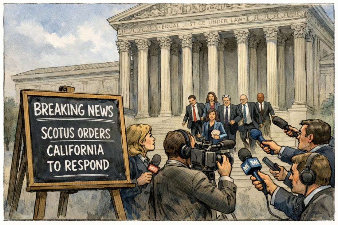 Thank you for being a free subscriber to So, Does It Matter? Please support what we do. And also get 100% of our content (right now you get about 60% of it!). *Breaking News* This Morning SCOTUS Asked State of California To Brief In the CAGOP's Emergency Application On Prop. 50 CaseMost emergency writs are kind of ignored. This action indicates that the court sees this as a matter they want to review in more detail.This is a breaking news analysis. The key facts and immediate implications appear above the paywall. The deeper legal and political analysis is reserved for paid subscribers. As is the case for most breaking news and afternoon posts (this is both). 🕒 5-minute read A signal from the CourtThis morning, the U.S. Supreme Court took a significant step that election lawyers recognize. The justices ordered California to respond to an emergency application challenging the congressional maps enacted under Proposition 50, with a response due by January 29. While this may appear procedural, it is not routine. Emergency applications are often denied without comment, sometimes within days. When the Court requests a formal response, it signals that the matter warrants serious consideration. The central question is clear and significant: should California use maps for the 2026 congressional elections that challengers claim were drawn with explicit racial targets? The Court has not answered this question but has chosen not to dismiss it, which is notable. Plaintiffs include the California Republican Party, Assemblyman David Tangipa, Mike Netter, and other affected voters and candidates. 🔒 This analysis continues below for paid subscribers. The key takeaway is not that the Supreme Court will block California’s maps, but that the justices are actively considering a challenge many expected to be dismissed. Inside the paid section: • Why this emergency application cleared an unusually high procedural bar • How Proposition 50 broke with California’s long-standing redistricting framework • Who the plaintiffs are—and why their standing matters • The partisan split on the three-judge panel—and why it matters • The Supreme Court’s own language tying California’s map to Texas • The steep legal headwinds challengers face despite this procedural win • Finally, my final analysis on this…... Keep reading with a 7-day free trialSubscribe to FlashReport Presents: So, Does It Matter? On CA Politics! to keep reading this post and get 7 days of free access to the full post archives. A subscription gets you: