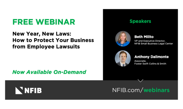 NFIB’s recent webinar provides tips on protecting your small business from employee lawsuits and preventative steps you can take to limit risk factors.