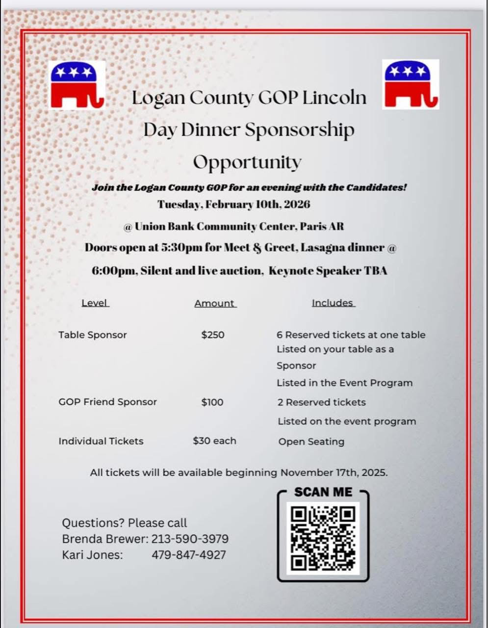 | | This email may be clipped. Click "view entire message" at the bottom of this email to view entire list | | Other Upcoming Happenings | | Greene County Republican Committee Candidate Meet and Greet | | Miller County Republican Committee Candidate Meet and Greet | | Independence County Republicans Reagan Rockefeller Dinner with U.S. Senator Tom Cotton | | Columbia County Republican Committee Reagan-Lincoln Dinner with U.S. Senator Tom Cotton | | Faulkner County Republican Party 3rd Annual Freedom Feast with Historian Bill Federer | | Logan County GOP Lincoln Day Dinner | | Pulaski County Republican Women Luncheon with AR House Candidate Stephen Bright | | |
