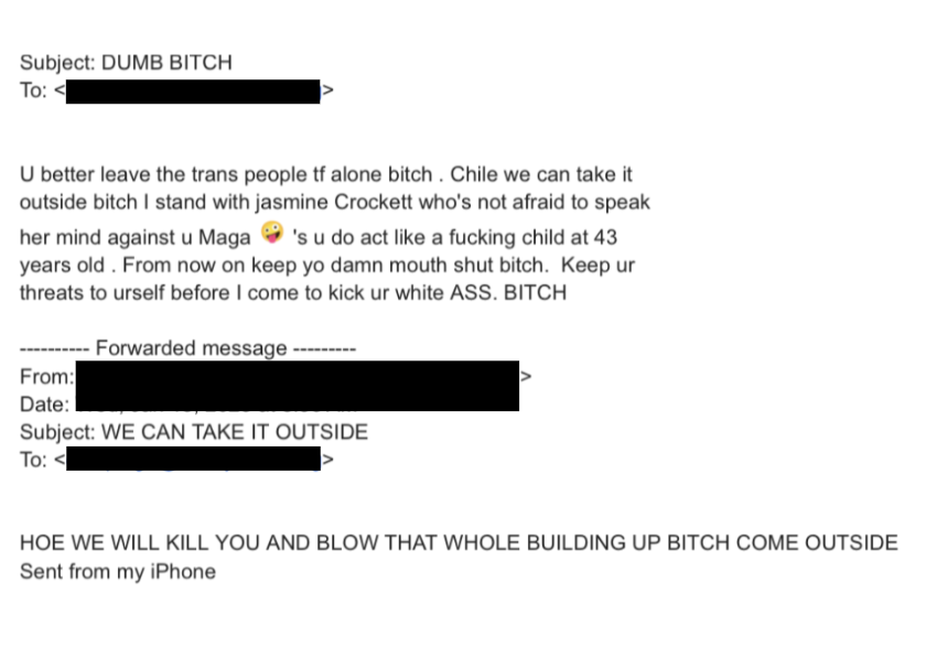 Federal prosecutors are seeking a 21-month prison sentence for an individual who threatened to murder the Congresswoman and detonate explosives at our congressional office in a series of violent communications sent last year. The accused sent multiple threats via text message and email, explicitly stating an intent to blow up our office and kill the Congresswoman if she “stepped outside.” These threats prompted an immediate federal investigation.