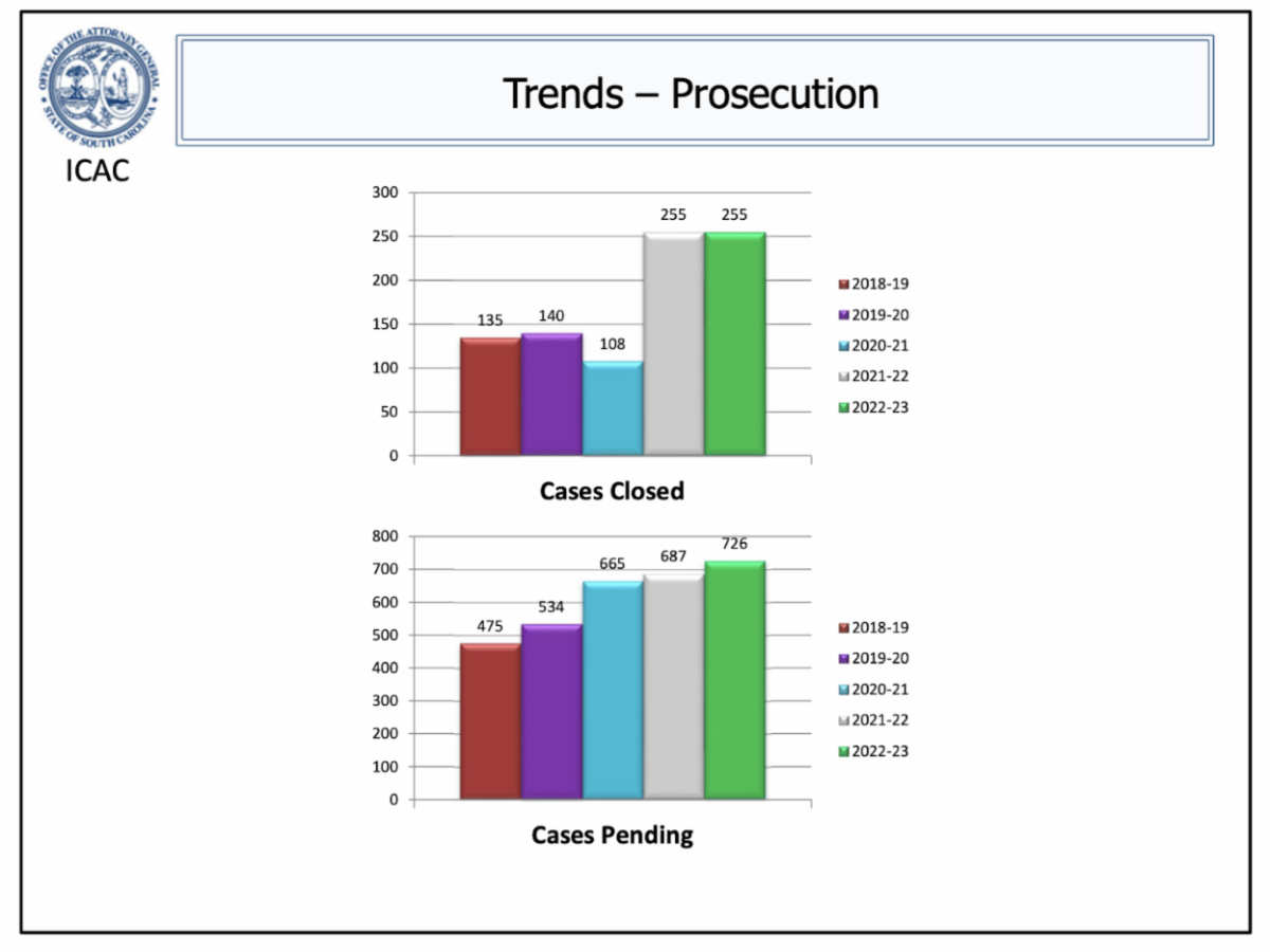 The FOIA data shows arrests, warrants, and forensic exams are happening. What’s breaking down is the prosecution phase. This puts responsibility squarely on the Attorney General’s Office and Alan Wilson’s leadership choices and other solicitors who follow his lead.