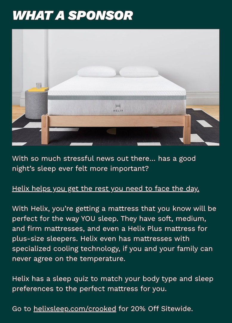 Locals are digging in. “I don’t know a single [protestor] who is feeling intimidated by them,” the Minneapolis resident said. “We’re seeing first hand how goofy these men are, how uncoordinated their operations are.” WHAT ELSE? 👀House Republicans grilled former special counsel Jack Smith over his investigation into Donald Trump’s attempt to overturn the 2020 election. The hearing was blatantly political, with GOP lawmakers trying to delegitimize Trump’s perceived foe. But Smith stood strong: “If we do not hold the most powerful people in our society to the same standards of the rule of law, then it can be catastrophic,” Smith said. “Because if they don’t have to follow the law, it’s very easy to understand why people would think they don’t have to follow the law as well.” Smith said he thinks Trump’s minions will probably try to find a way to charge him with a crime. The U.S. is actively seeking regime change in Cuba, aiming to push out the Communist leadership by the end of the year, according to the Wall Street Journal. Trump’s team isn’t even denying it: It’s in the U.S.’s interest for Cuba “to be competently run by a democratic government and to refuse to host our adversaries’ military and intelligence services,” the State Department told the outlet. Trump is suing JPMorgan and CEO Jamie Dimon for $5 billion, alleging that the bank dropped him for political reasons in 2021. The lawsuit comes shortly after Dimon publicly criticized Trump’s economic and immigration policies. A bank spokesperson said the suit has “no merit.” Trump is feeling extra litigious today. He also announced that he’s expanding his defamation suit against the New York Times, after the outlet published a poll showing that his approval ratings are in the toilet. “The New York Times, and so many others, print Polls that are knowingly false,” he wrote on social media. The FCC will begin enforcing a rule requiring entertainment talk shows to offer the same amount of airtime to all candidates running for a specific office. It’s widely viewed as an attack on late night television hosts, who frequently speak out against Trump. The move will make it more difficult for shows to “interview politicians they don’t agree with,” Jimmy Kimmel said on his show last night. Trump’s luxury Qatari superjet is expected to be flying as Air Force One by this summer. Just in time for Donald’s 80th birthday… err, America’s 250th birthday! Barron Trump may have saved a woman’s life by calling the British police. Barron reportedly told cops that he was on Facetime with a friend when he saw that she was being assaulted by her ex-boyfriend. “He helped save my life. That call was like a sign from God at that moment,” the woman later said. LIGHT AT THE END… ☀️The U.S. murder rate dropped by 21 percent across major cities since last year. It’s likely at its lowest level since 1900. The White House is taking credit for the good news, but the reality is more complicated. “It’s extremely difficult to disentangle and pinpoint what’s actually driving the drop,” Council on Criminal Justice Adam Gelb said in a statement. The U.S. economy grew faster than originally thought at the end of last year, according to revised government data. Here’s the catch: the economy’s health is increasingly dependent on how much wealthy people spend, in a phenomenon dubbed the K-shaped economy (because one line of the chart goes up, and the other goes down, like a K). The NASA astronauts who had to cut their mission short last week due to a medical emergency said that the portable ultrasound machine on board was “super handy.” As terrifying as that situation was, the astronauts are looking on the bright side: “We can handle any kind of difficult situation,” one of them said. “This is actually [a] very, very good experience for the future of human spaceflight.” Two Maryland birders have been on a quest to identify every living organism in their state. Fifteen years after being unable to identify a flower they saw on a walk, their website has catalogued more than 22,000 species of all kinds across Maryland. I think we found the solution to the male loneliness epidemic, folks. A 25-pound pug-chihuahua mix named Mo Bamba was elected as the 37th mayor of a neighborhood in Austin, Texas. Mayor Bamba won by only 130 votes, beating out several other animal candidates and becoming the first dog ever elected to the post. His slogan was compelling: “He won’t just fight for you, he will bark at you.” A rare printing of the Declaration of Independence, an edited draft of the Constitution, and other iconic pieces of American history will hit auction on Friday. Let’s not tell Nichols Cage how easy it’s become to obtain historical U.S. documents…. Speaking of American history, The Eagles’ greatest hits album from 1976 became the first album in the U.S. to sell over 40 million units. “In an age, in a culture, where everything seems to become more ephemeral, by the day, it is gratifying to have been part of something that endures, even for fifty years,” founding member Don Henley told the Associated Press. “We are amazed and grateful.” This just gives me another excuse to unwind with a tequila sunrise after a long week. (Sorry to those of you who agree with The Dude, who famously didn’t like the Eagles.) You’re currently a free subscriber to Crooked Media. For the full experience, upgrade your subscription. |