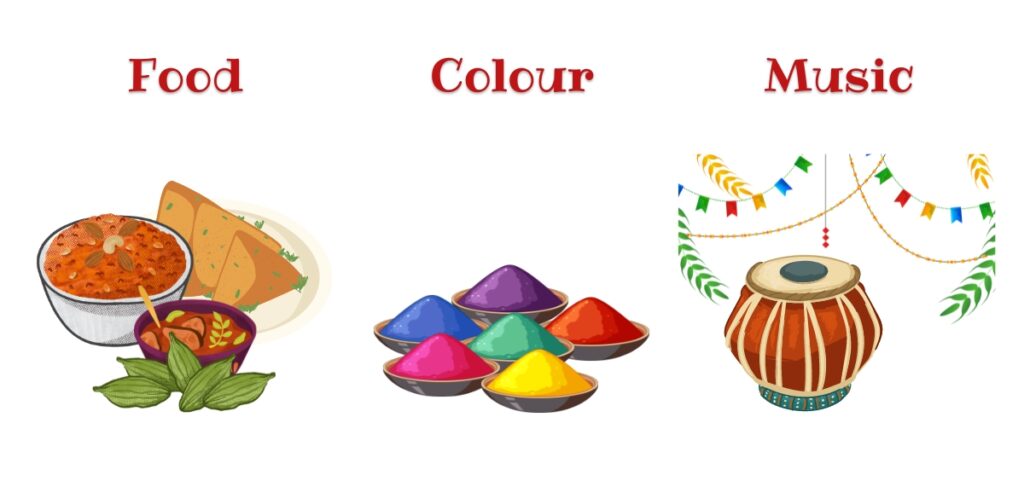 The festival celebrates the triumph of good over evil, good harvest, and fertility with the daubing of coloured powders.
