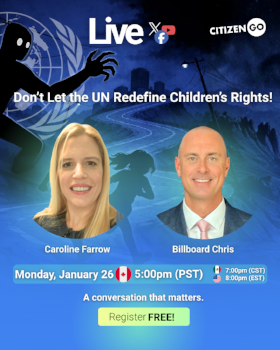 During our live event, Chris and I will be discussing a dangerous agenda emerging from the United Nations, which claims abortion and gender transition are “children’s rights,” bypassing and silencing parents who speak plainly about biological reality and children’s wellbeing.