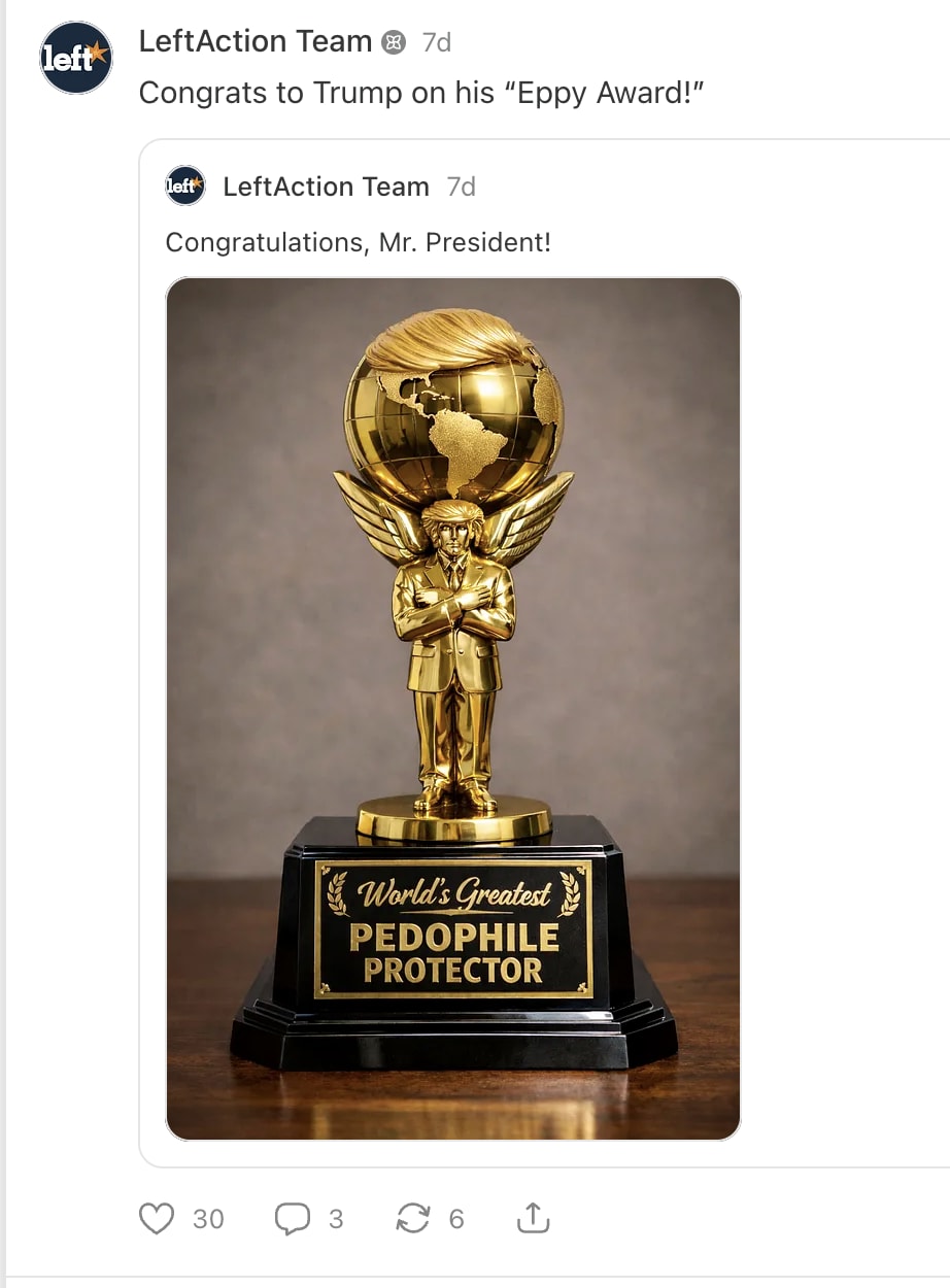 Thank You for Being Part of Left Action. Now Let's Get Moving!Actions you can take, and other ways to fight back and make a difference,Hey there — Thank you again for being part of Left Action! (and welcome to the new folks joining every day). Our new Substack community is already closing in on 100,000, thanks to great folks like you, and it’s going to be a huge asset in mobilizing activists to turn progressive outrage into effective action. So thanks, and a special thanks to all the paid subscribers who make this possible. First, before we get started, let’s just confirm that this was on purpose and that you still want to be subscribed to Left Action. If “no”, you can always unsubscribe using the link down below (and you can still be part of our email list or FB community, if you prefer those). Otherwise… thanks for being part of the team! You’re now on the inside of an organization that believes activism works best when it’s:
