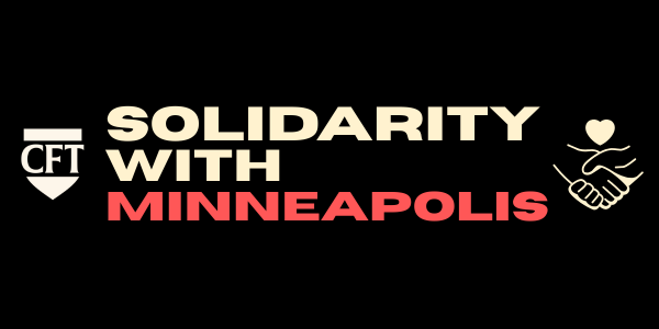CFT stands in solidarity with the people of Minneapolis, and we urge our members to peacefully join rallies throughout the state today to show your support. Major rallies are planned for Los Angeles and San Francisco, with many others planned in other local communities. If you can’t make a rally, consider taking online action, demanding the corporations that are aiding the ICE terror campaign to stop immediately, including Target, Home Depot, Enterprise, Hilton, and Delta.