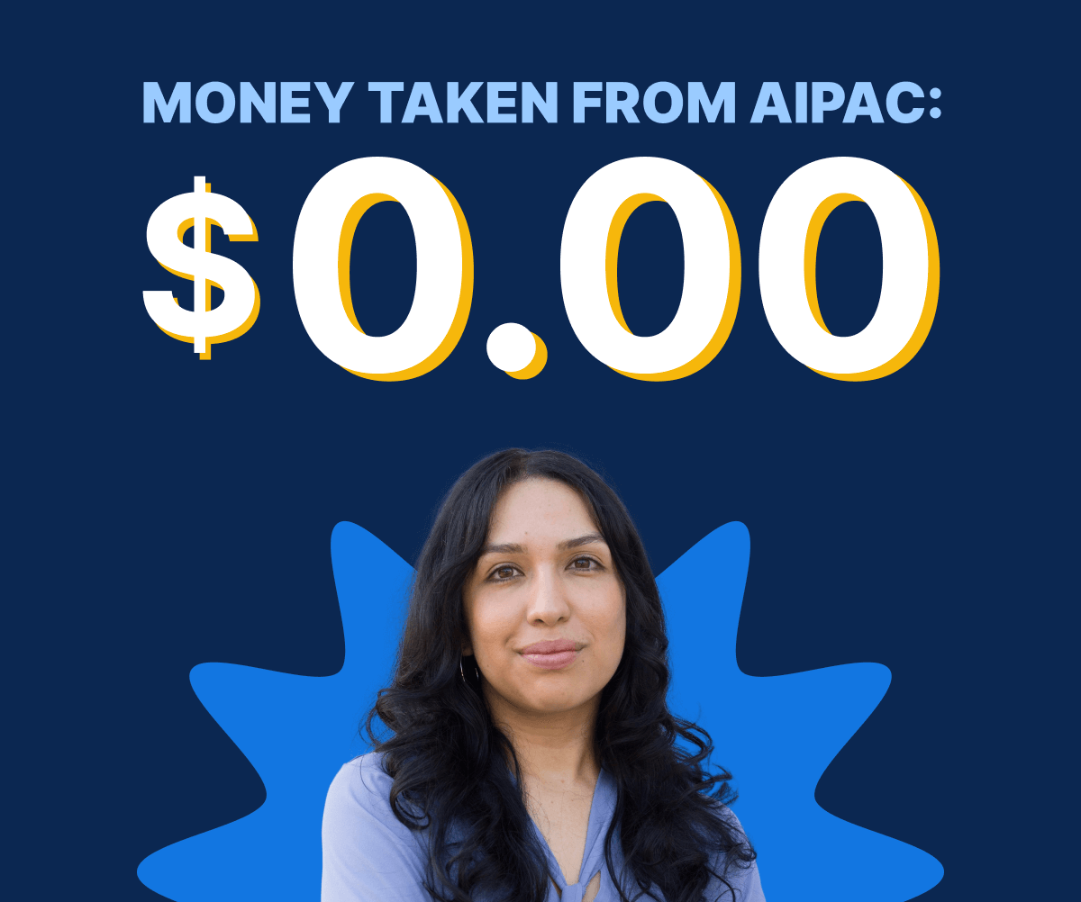John, Angela has never taken a DIME from AIPAC, and she is committed to never changing that.