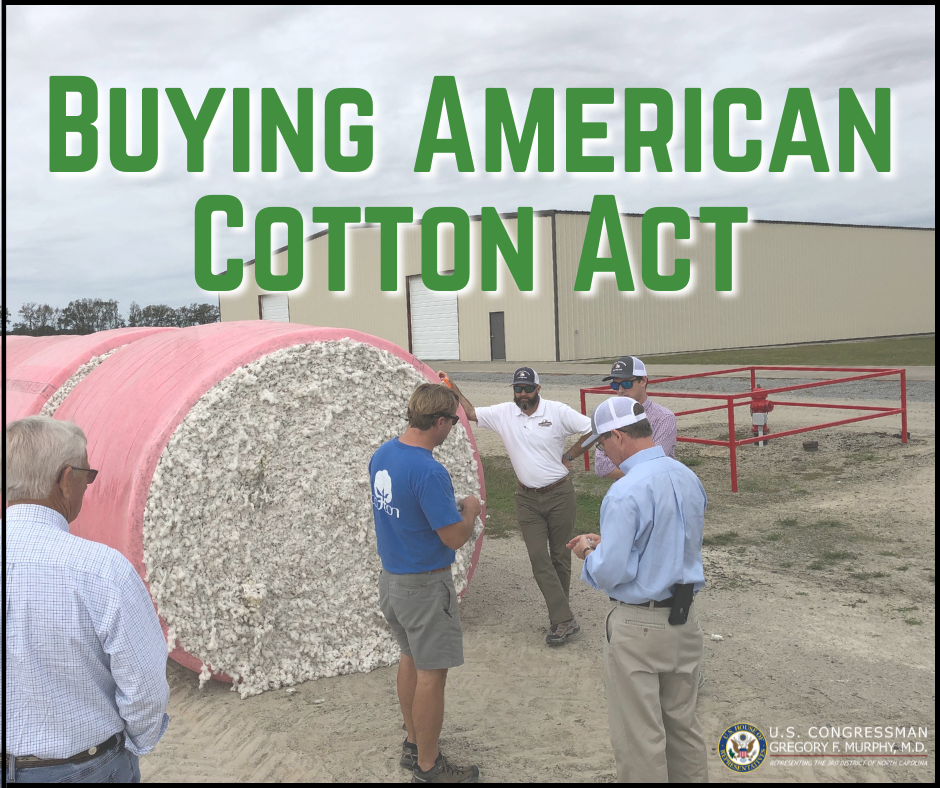 However, global competition has made survival for our cotton growers difficult, straining rural communities and destabilizing our supply chain. I am proud to put Eastern North Carolina first by introducing the Buying American Cotton Act to support its rich tradition of producing high-quality cotton for the United States and the world.