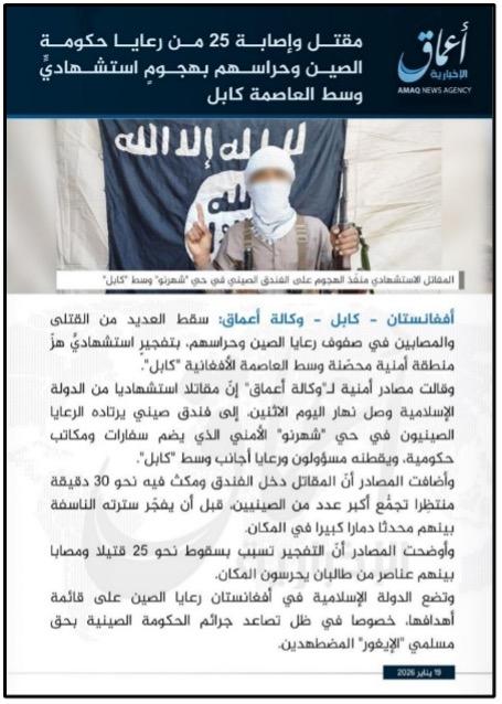 ISIS Amaq claim of responsibility for the January 19 Kabul attack.