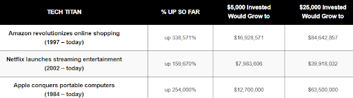 Loads of people got stinking rich. Check out this famous Holy Trinity of tech stocks…
