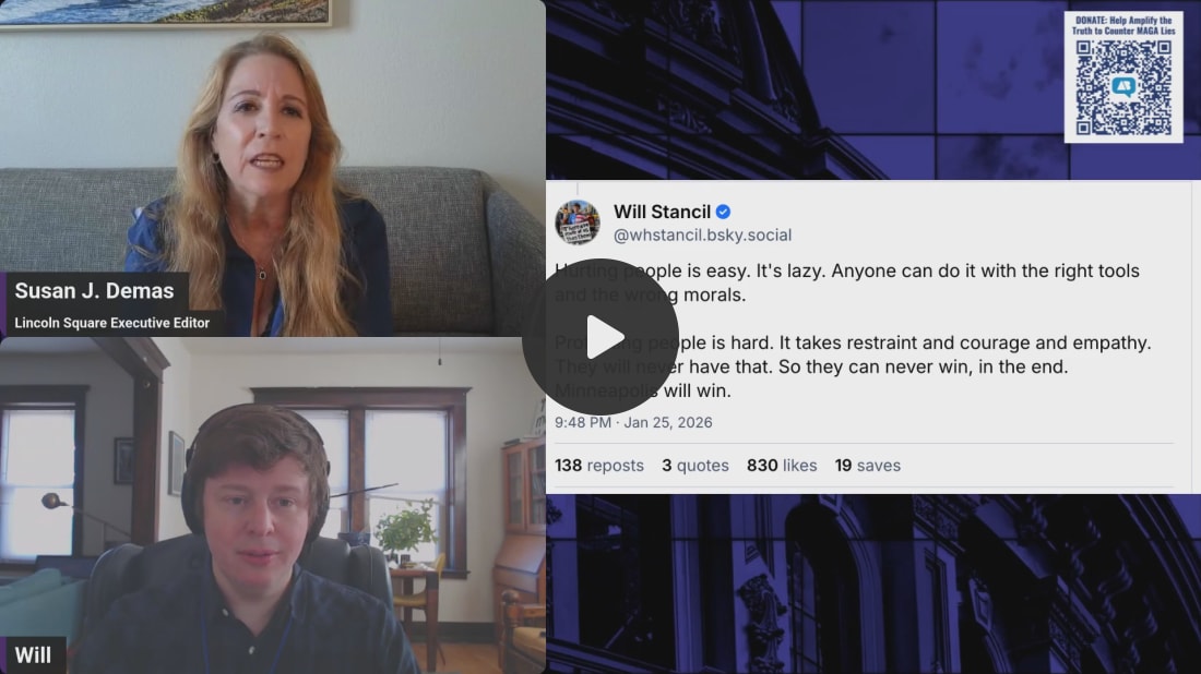 Enjoy 25% off our annual subscription rate and get all-access to analysis and commentary from our expert strategists when you upgrade right now. Tear down those paywalls and get all-access to Lincoln Square while making a direct investment in defending democracy. Inside ICE Watch with 'Minnesota Guy' Will StancilWhat can we do to resist ICE? Here are tips from ground zero in the Twin Cities.For the past month, the country has watched as ICE, which is ostensibly an immigration enforcement agency, took to the streets of Minneapolis and began terrorizing neighborhoods. In the face of these raids, thousands began showing up, speaking out, and organizing against the lawless harassment of not only undocumented people, but also American citizens. One of the many people documenting the tyrannical takeover of his city is Will Stancil, an attorney and policy analyst who describes himself as a proud member of “Do Something Twitter.” And now he’s walking the walk, every day, in his hometown, whether it’s chronicling the abduction of two 16-year-old girls or following ICE agents around in his Honda Fit. For rapid response training to ICE takeovers, check out Indivisible’s resources here. Stancil joined Lincoln Square Executive Editor Susan J. Demas to paint the picture of what it’s like living in a war zone. “At times it has felt very much like we are under federal siege, so we’re city under occupation. There are armed, masked men who are clearly hostile to the population, have no interest in protecting us or working with us, don’t care about our interests at all. And they’re roaming our city,” he said. Stancil, who works on public school policy, lamented the collateral damage ICE has had on the community, with schools around the region closed due to the risk of agents raiding a school and dragging students away from their classes. He also encouraged more people who are working alongside him to speak out to the media. “We build support for resistance by putting ourselves out there publicly, being public about defying them, and then seeing it have, you know, seeing them unable to do anything about it. I also think it’s really important why we are out here. We’re the first link on a chain that creates the information, that documents what’s happening on the ground. This is why Alex Pretti’s shooting was immediately, the narrative immediately collapsed around it, the government narrative, because there’s so many films.” Watch more of Will Stancil’s harrowing accounts from the ground and what he hopes is next for his city here on Lincoln Square. And be sure to check out his ongoing coverage on his Bluesky account (which has been endlessly memed). Not ready to subscribe? Make a one-time donation of $10 or more to support our work amplifying the facts on social media, targeted to voters in red states and districts that we can help flip. Every $10 reaches 1000 Americans. The Truth needs a voice. Your donation will help us amplify it. |
